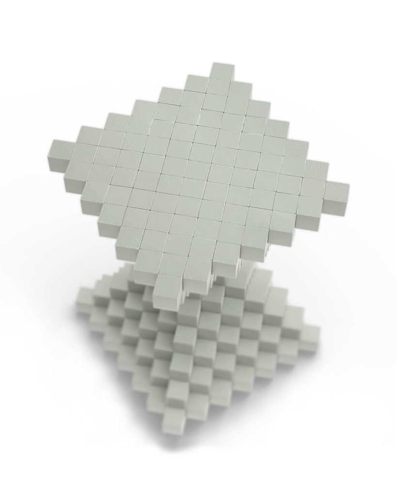 Materieel en vormelijk blijft ROOTS terughoudend. De expressie ligt niet in contrast of gebaar, maar in verhouding, herhaling en de subtiele verschuiving tussen waargenomen en werkelijke dichtheid. Het object positioneert zich als een rustig anker in de ruimte—precies, opgebouwd, en tegelijkertijd ambigu in zijn eerste lezing.
